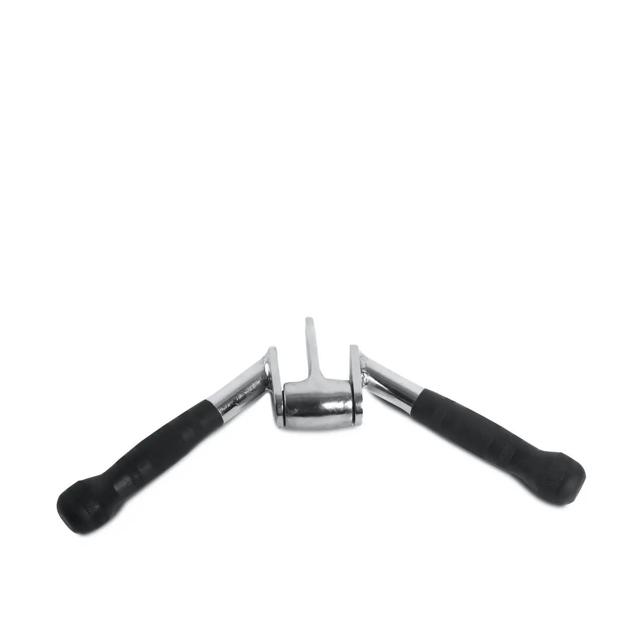 La característica giratoria integrada permite un rango de movimiento más natural y fluido, disminuyendo la tensión articular y añadiendo un estímulo adicional que potencia la eficiencia del ejercicio. Ideal para rutinas de press de tríceps, extensiones, jalones y movimientos de empuje en polea, este accesorio es también versátil para ejercicios complementarios de bíceps, hombros y pecho.