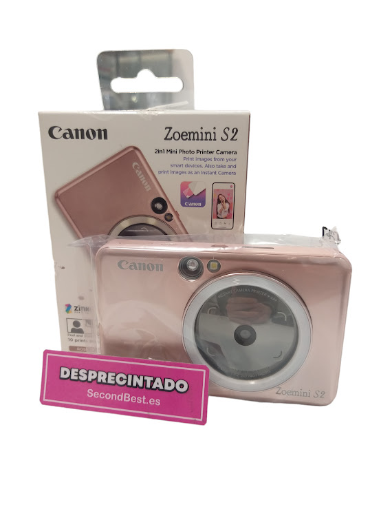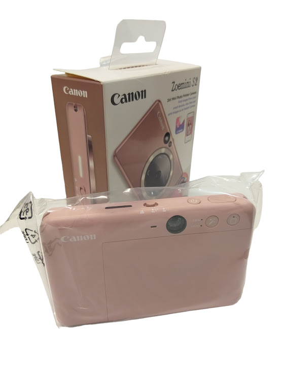 Hazte un selfi con la cámara instantánea Canon Zoemini S2, en rosa, y revisa tu pose con la visión en directo desde la aplicación Canon Mini Print. ¿Te has quedado sin papel? Guarda tus favoritas en la tarjeta Micro SD para imprimirlas más tarde.
