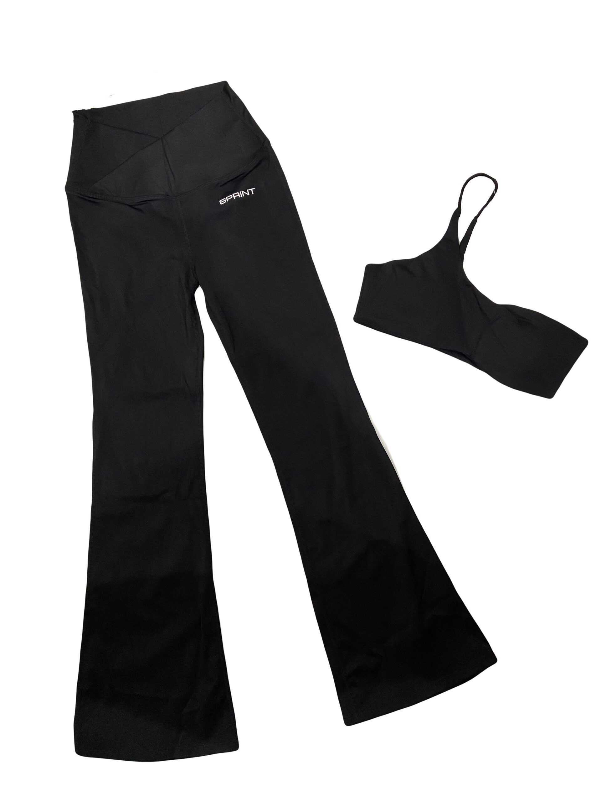 Conjunto deportivo de pretina alta y leggins con bota ancha