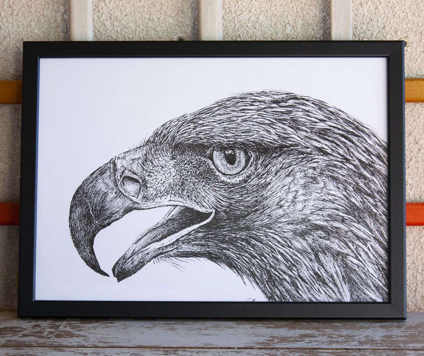 Dibujo Águila, ilustración original y opción lámina impresa.