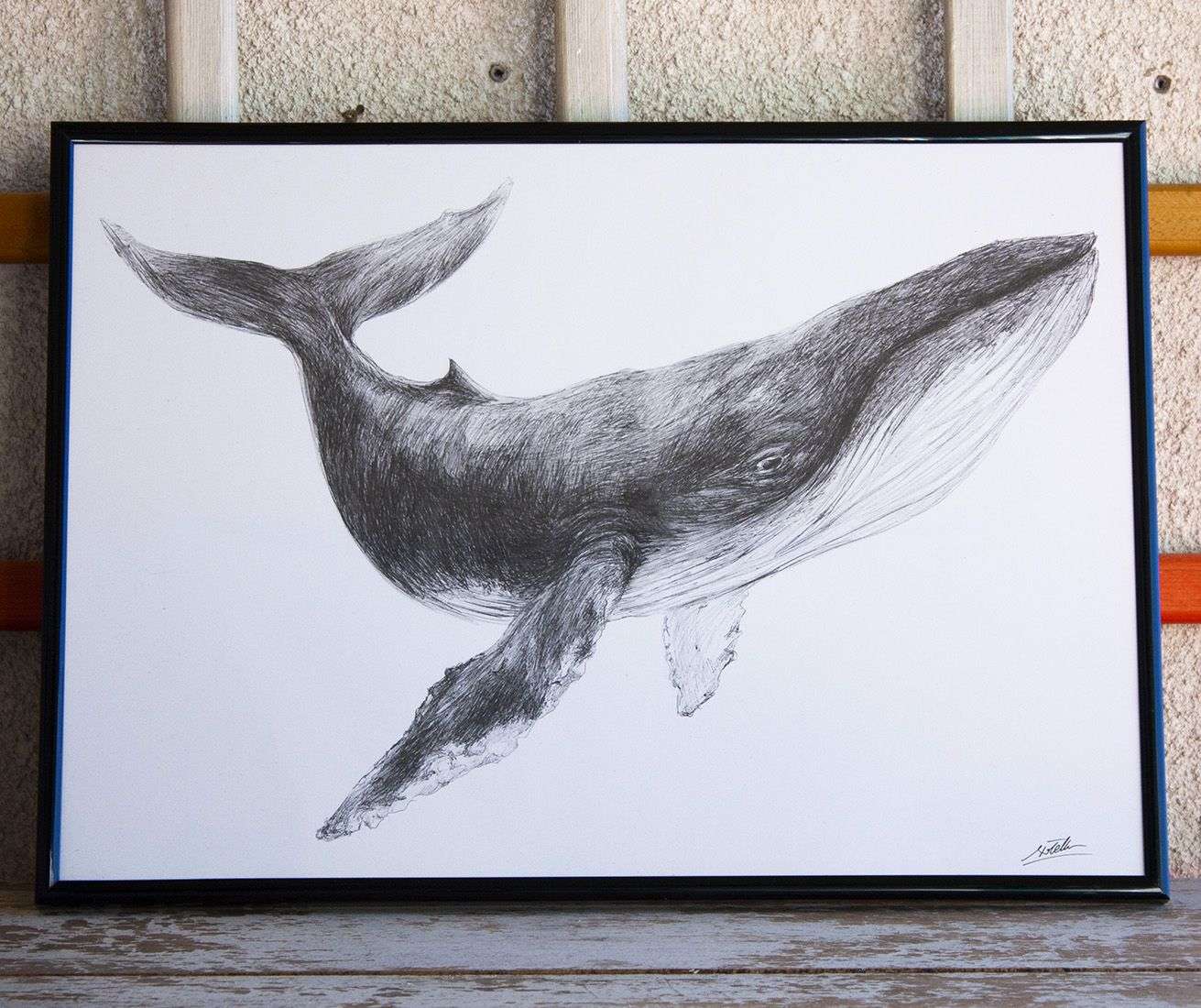 Dibujo Ballena, ilustración original y opción lámina impresa.
