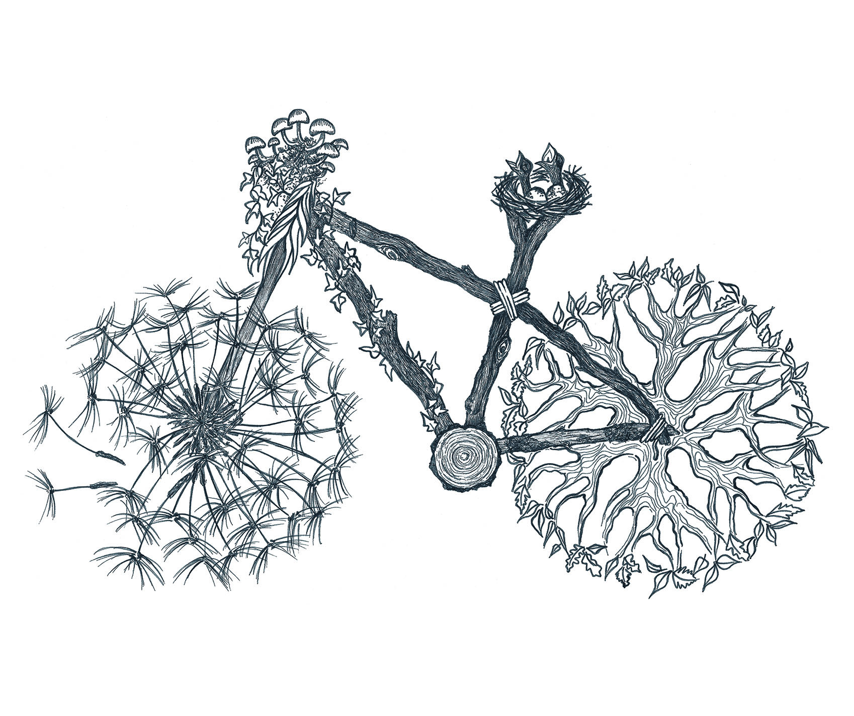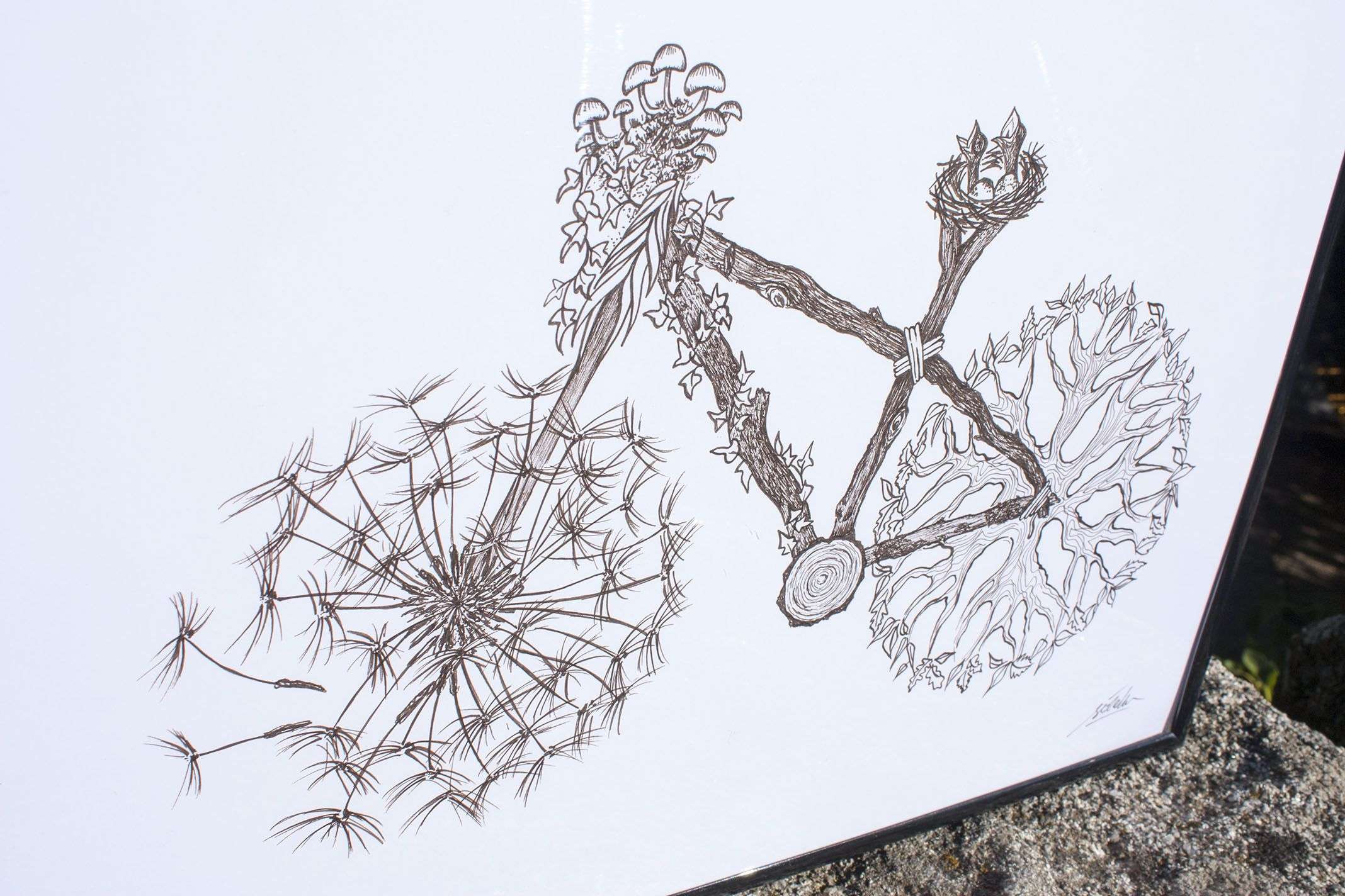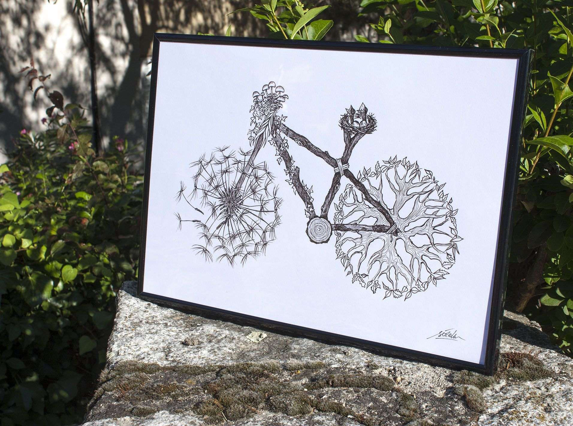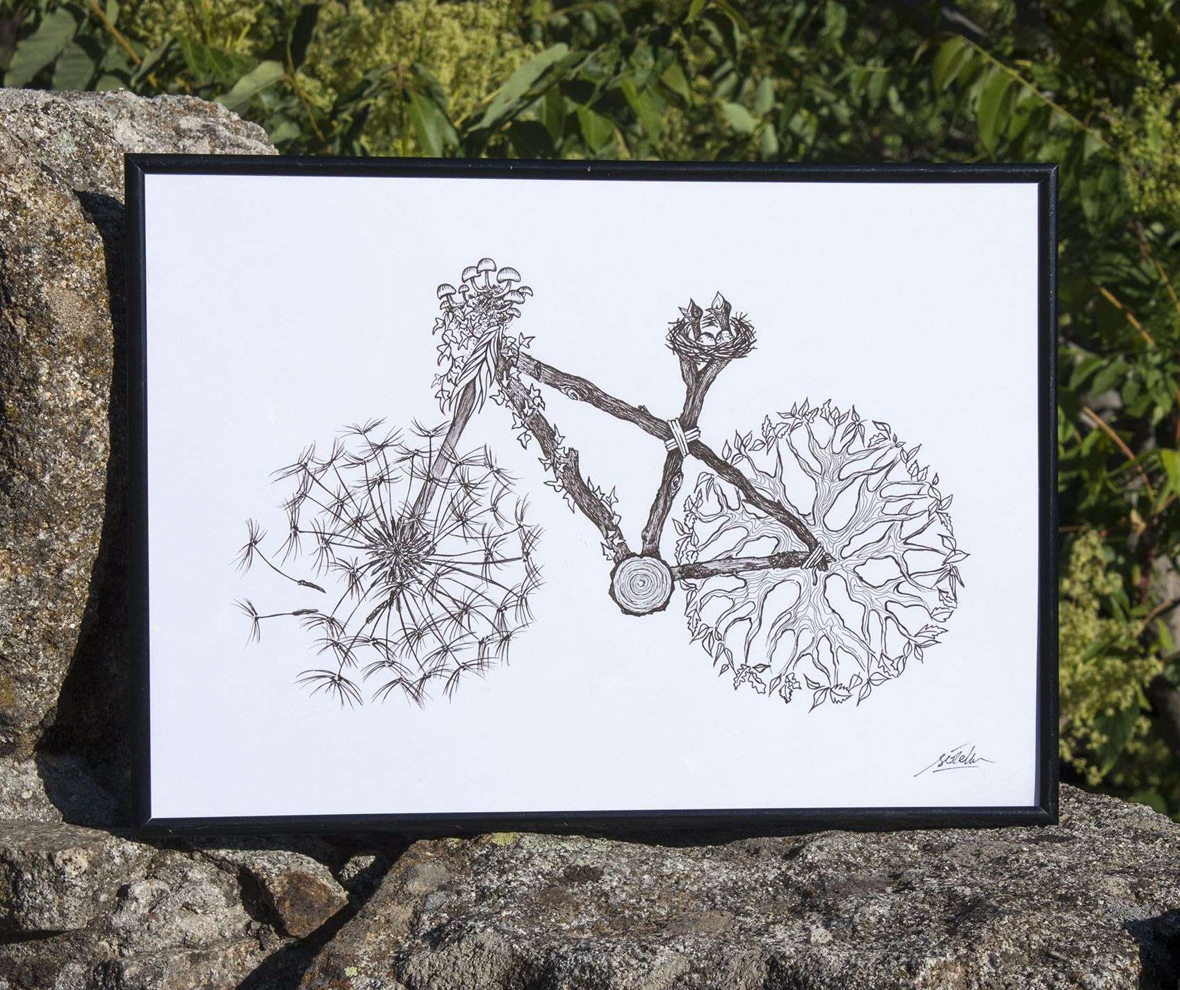 Dibujo Bici Naturaleza, ilustración original y opción lámina impresa.