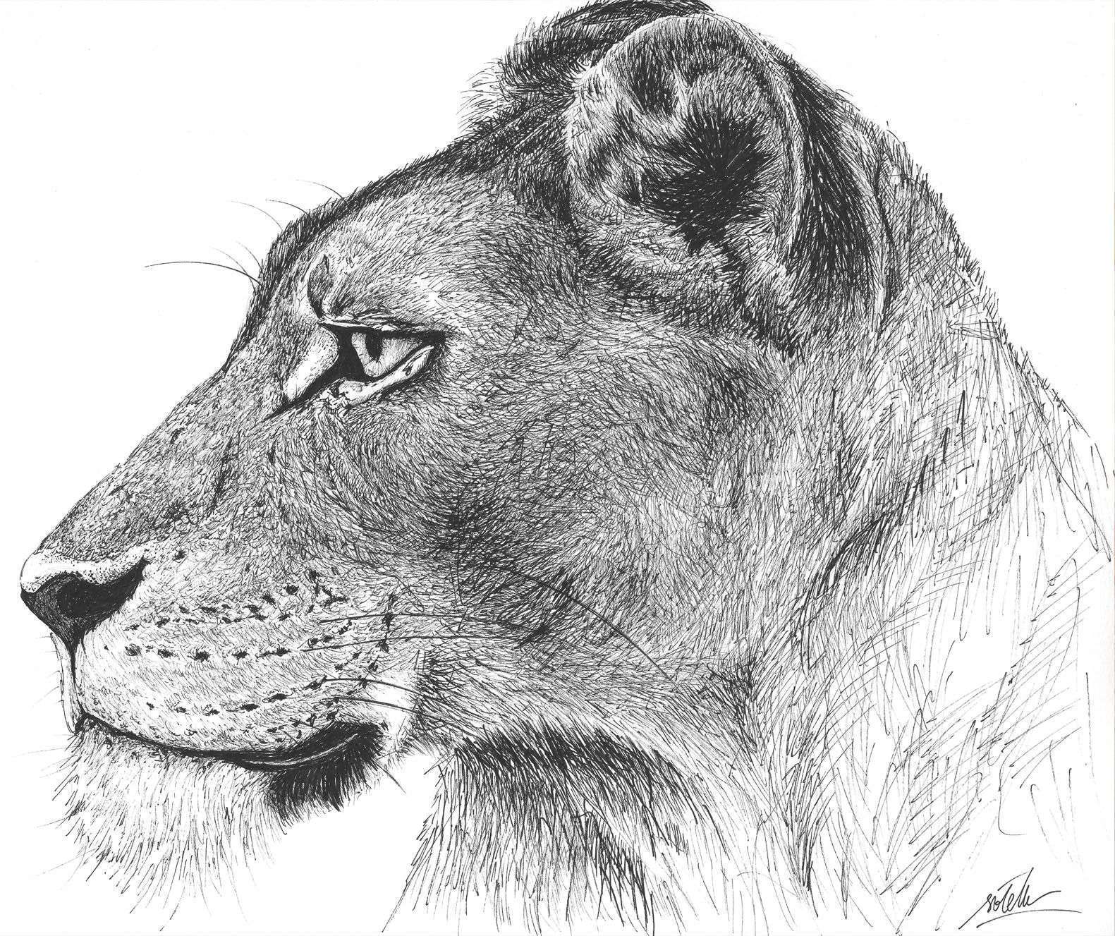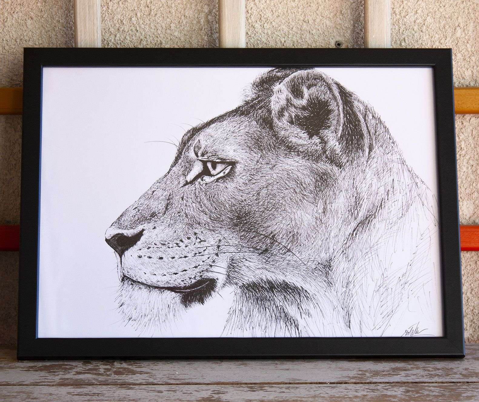 Dibujo Leona, ilustración original y opción lámina impresa.