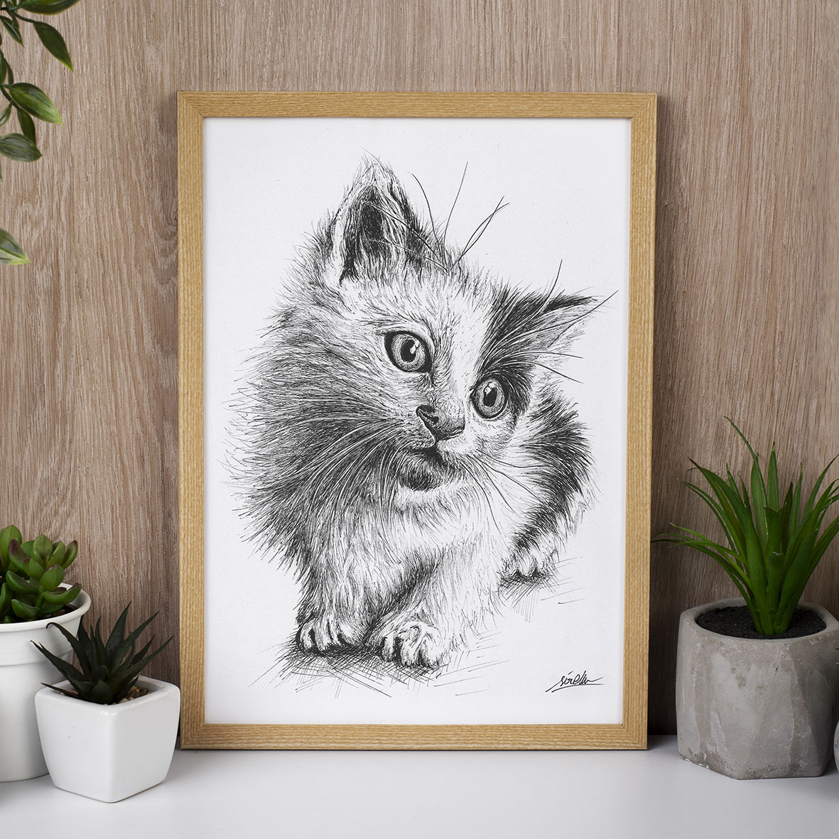 Envíanos una foto de tu animal de compañía en buena calidad, donde se vean bien los detalles. También puedes enviarnos varias fotos, en diferentes posiciones del animal, y las vemos juntas para decidir cuál puede quedar mejor en el dibujo.