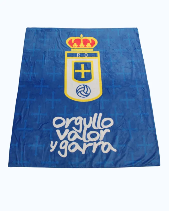 Impresión digital a color con el escudo del Real Oviedo y el lema «Orgullo, Valor y Garra».