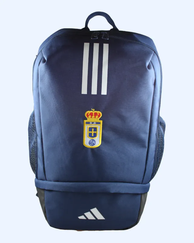 Mochila adidas con las 3 bandas selladas, el logotipo de las 3 bandas serigrafiado y el escudo del Real Oviedo bordado a color. Cuenta con correas acolchadas para los hombros que te permite llevarla con más comodidad. Incluye un compartimento independiente que te permite guardar las botas.
