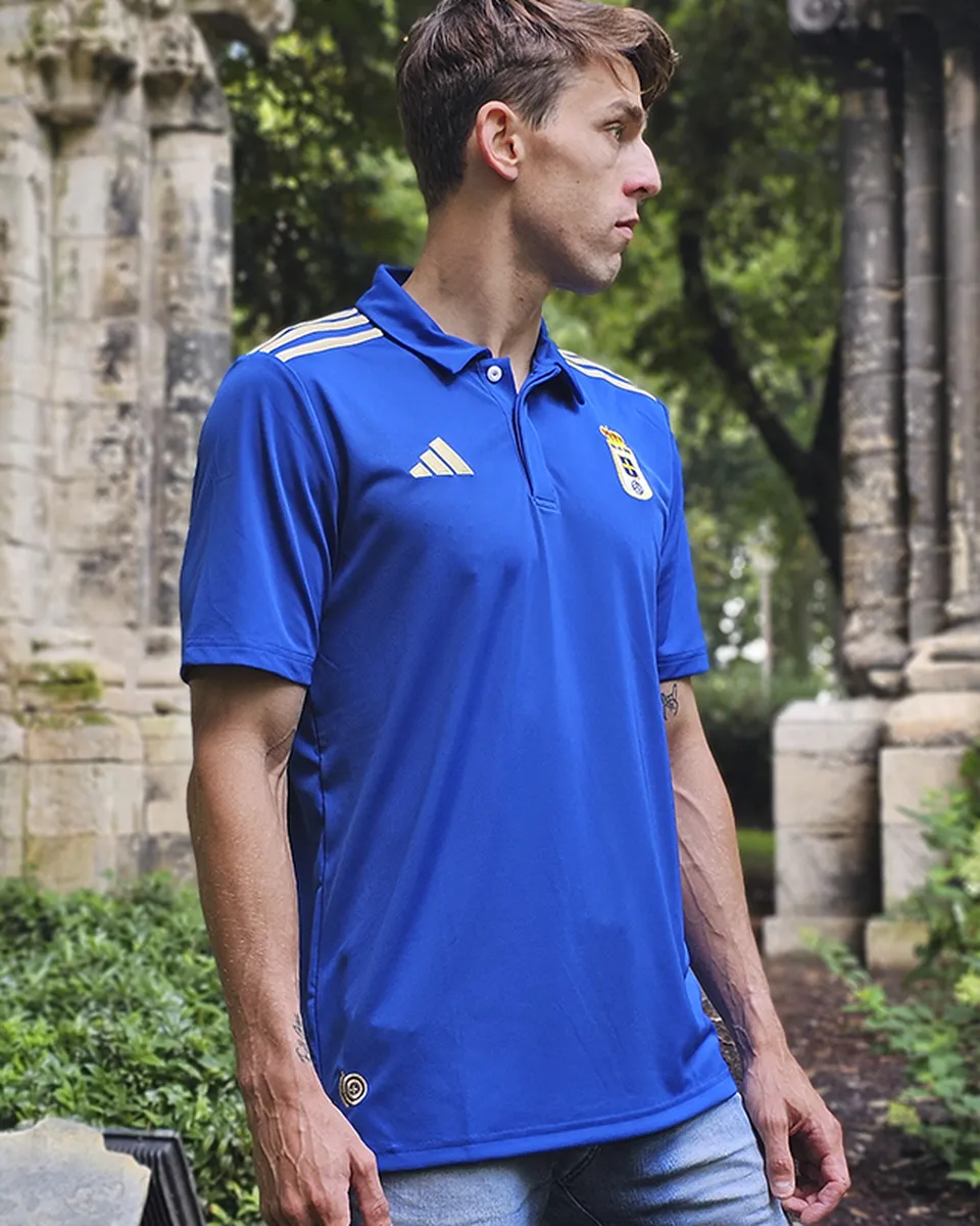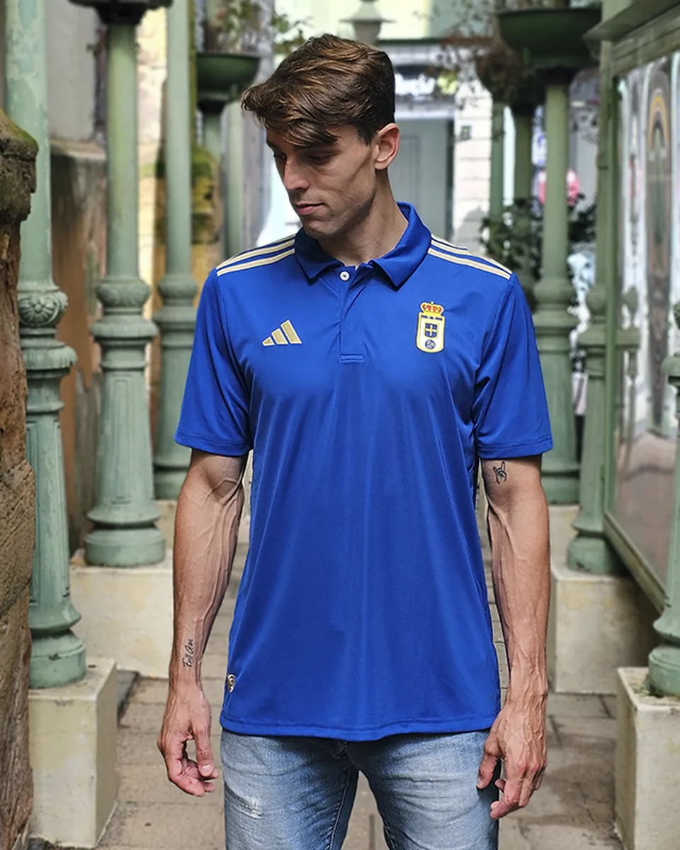Polo adulto del Real Oviedo 25/26 en color azul perfecto tanto para salir a dar un paseo como para ir a ver un partido. Confeccionado en poliéster suave al tacto.
