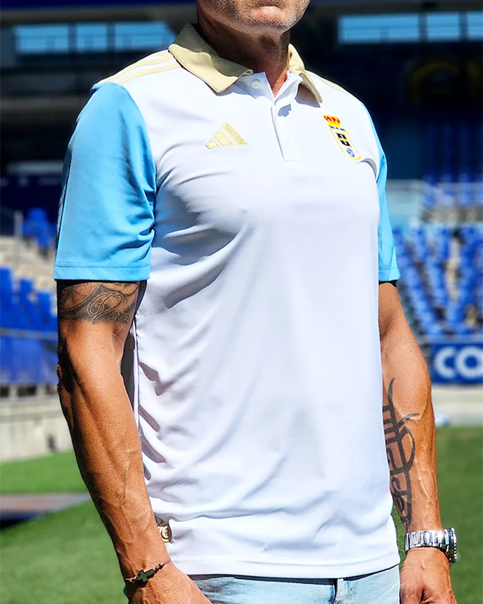 Polo adulto del Real Oviedo 25/26 en color blanco, perfecto tanto para salir a dar un paseo como para ir a ver un partido. Confeccionado en poliéster suave al tacto.