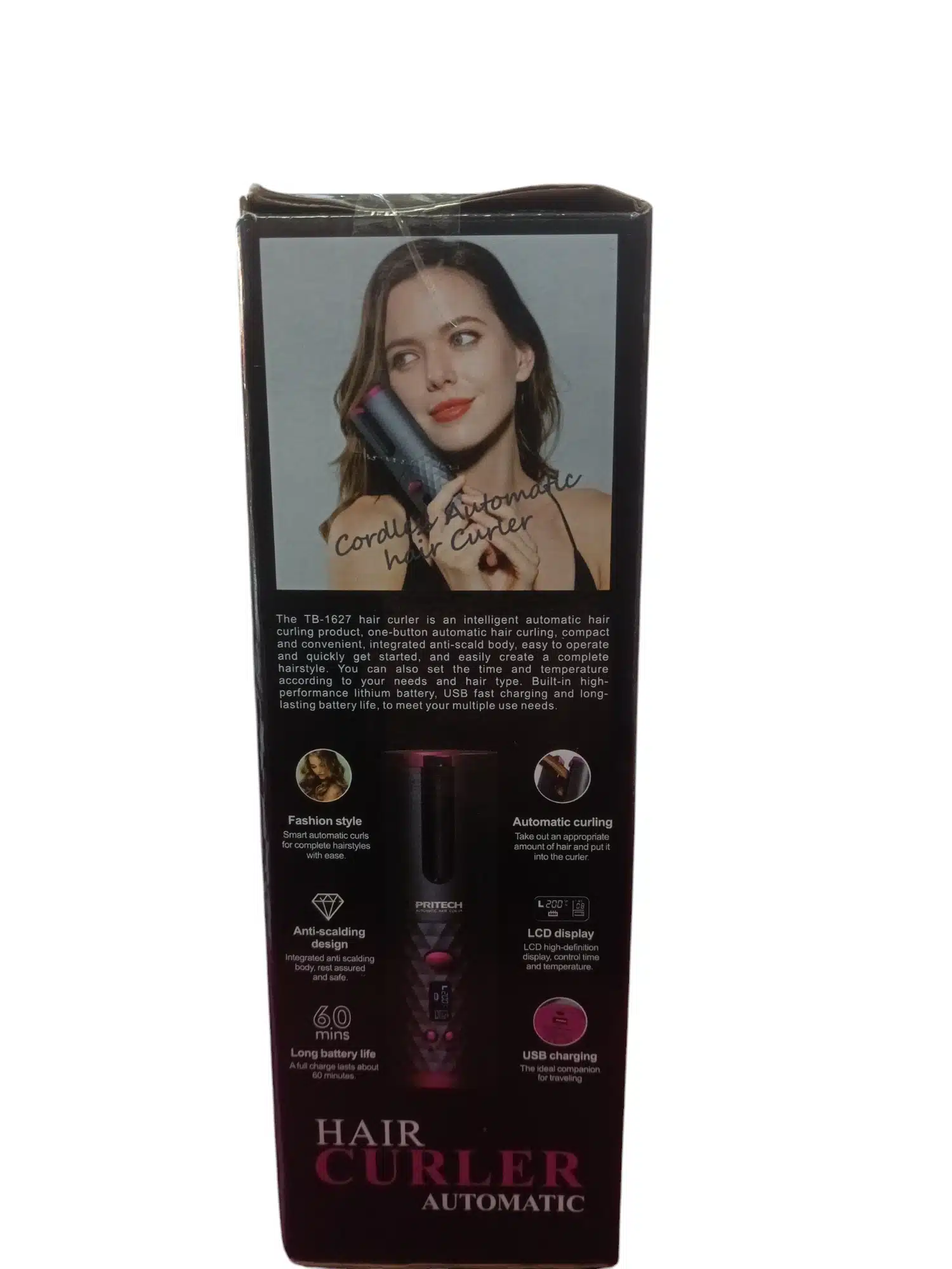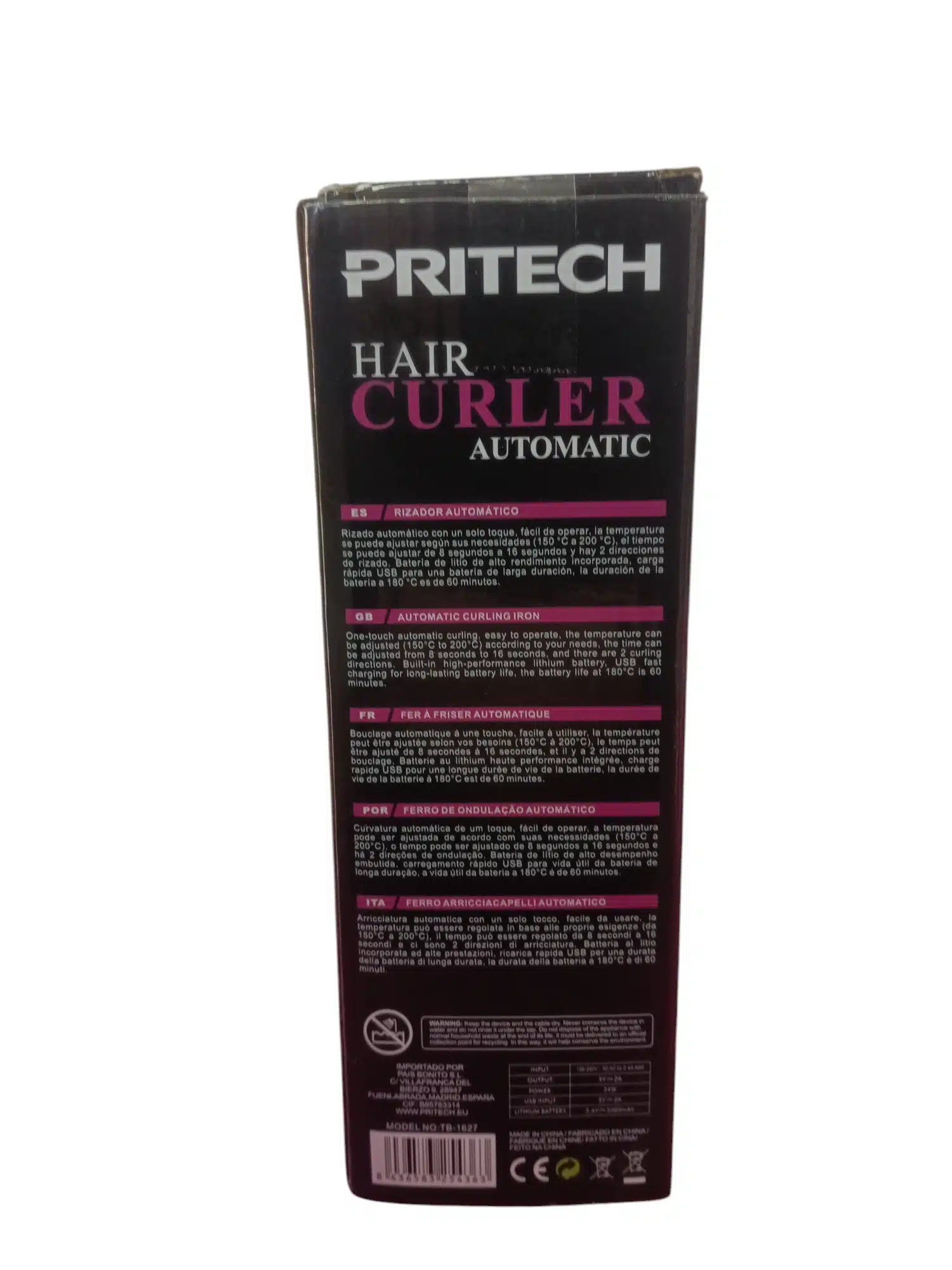 El Pritech TB-1627 es un rizador de pelo automático y recargable, diseñado para ofrecer rizos definidos de manera sencilla y sin cables. A continuación, se detallan sus características más destacadas: