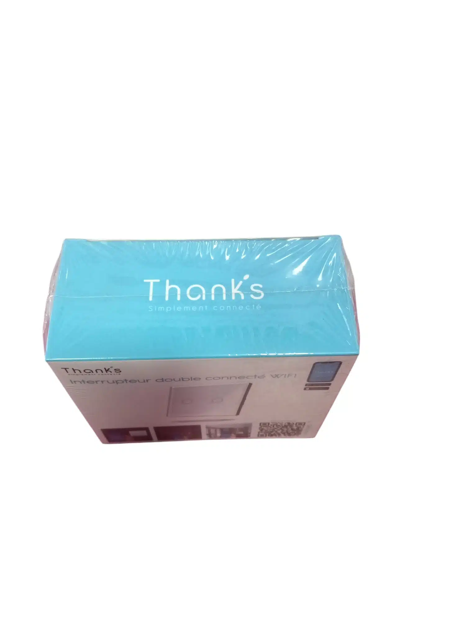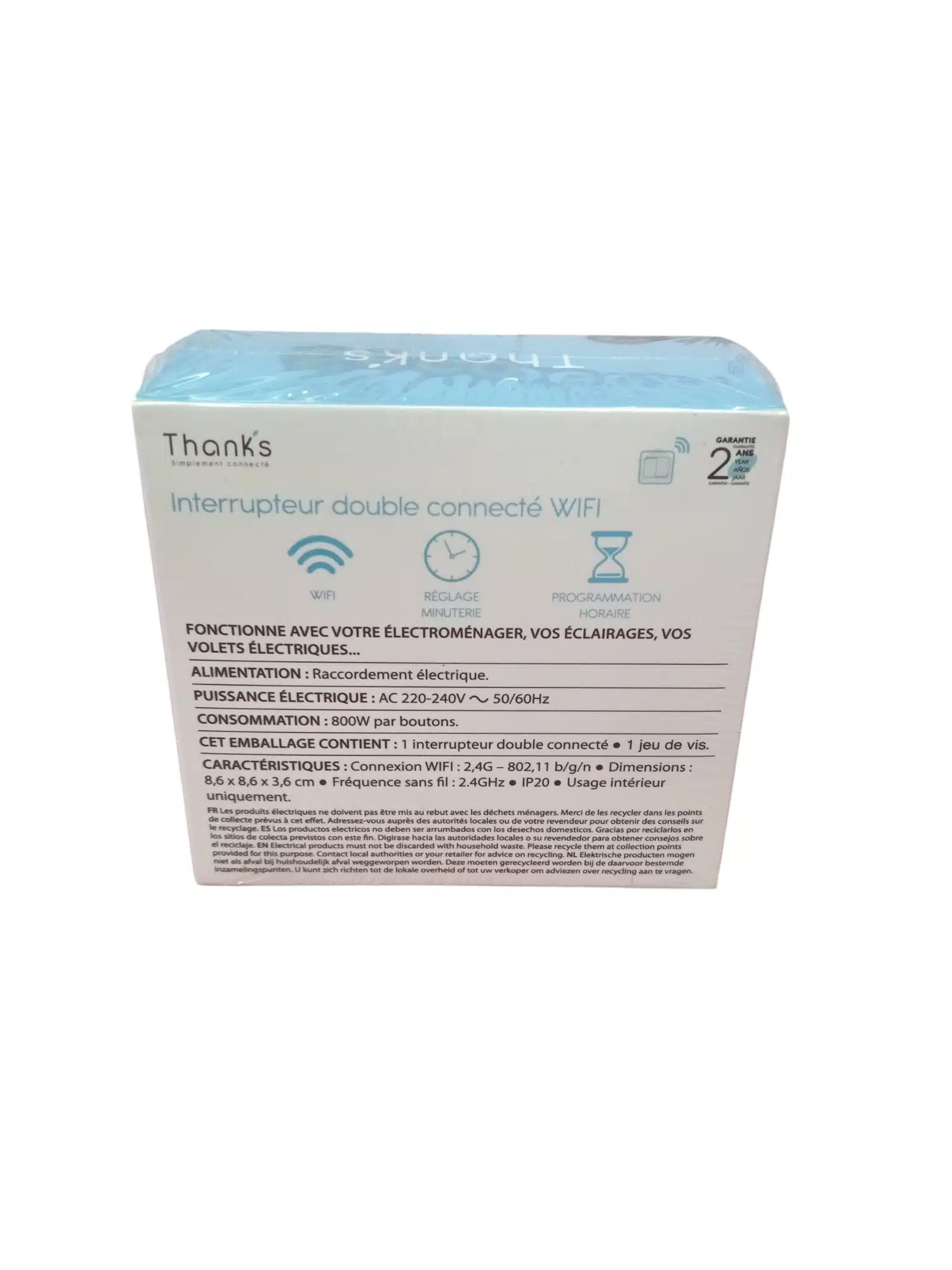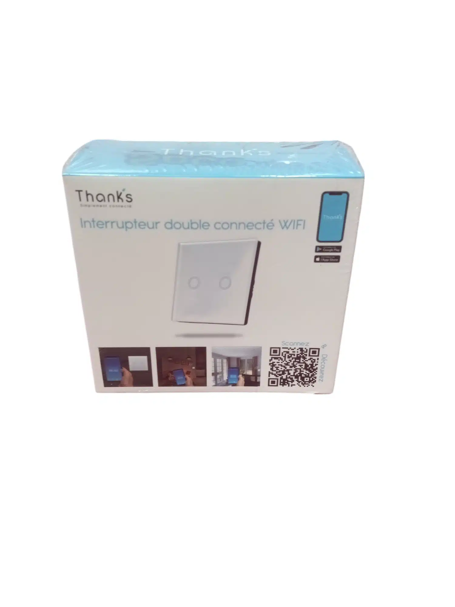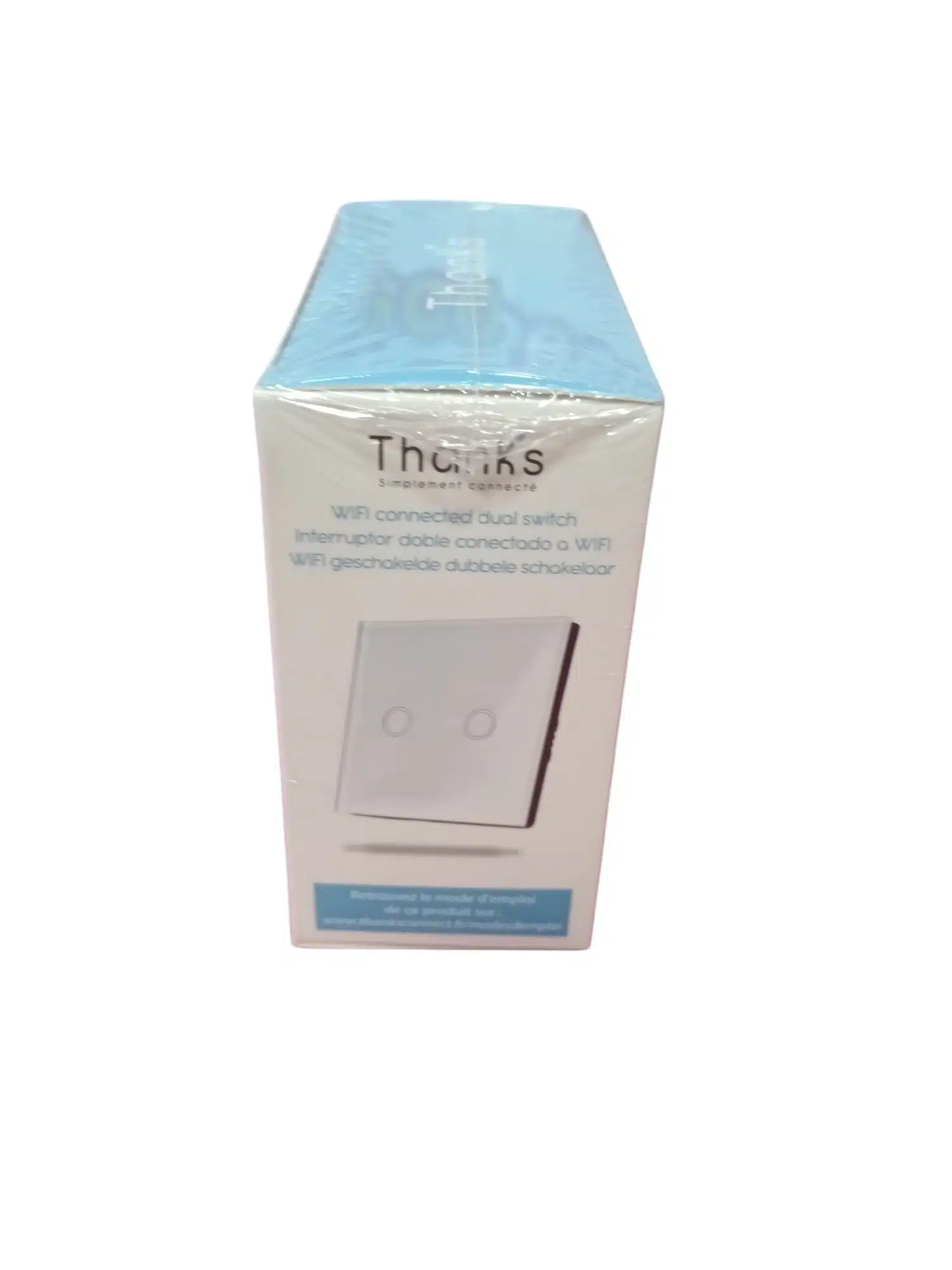 Interruptor vía wiifi, 2 botones. Controlable mediante wifi y por Android y iOS. Color blanco, plano.