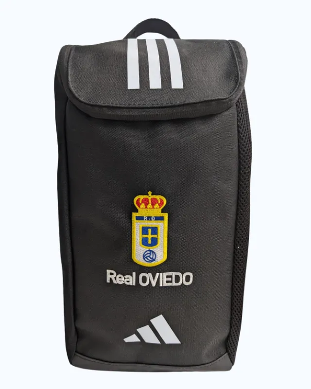 Este elegante botero adidas del Real Oviedo en color negro te permite tener a buen recaudo tus botas de fútbol. Se ha confeccionado en un tejido técnico que resiste el uso intensivo dentro y fuera del vestuario. El panel de malla transpirable favorece la ventilación para que tus botas se sequen de forma natural.